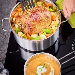 - Tất cả các nồi của Rösle Basic Line đều an toàn với máy rửa bát và có thể sử dụng trên đĩa sứ thủy tinh, bếp điện, gas và bếp từ cũng như trong lò nướng