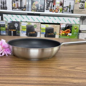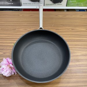 – Hình dạng tiện dụng với bề mặt chiên rộng rãi: Chảo có thiết kế tiện dụng với phần đáy rộng và thành cao cung cấp đủ không gian để chiên những phần ăn lớn hoặc món ăn kèm. Nhờ hình dạng tròn, có đủ không gian để chuẩn bị các món thịt hoặc cá thịnh soạn hơn cùng lúc với các món ăn kèm nhỏ hơn như rau mà không cần phải liên tục sắp xếp không gian. Tay cầm công thái học đảm bảo cầm nắm an toàn khi chiên và trọng lượng nhẹ của chảo giúp giảm lực cần thiết và giúp việc lật trở nên dễ dàng hơn.