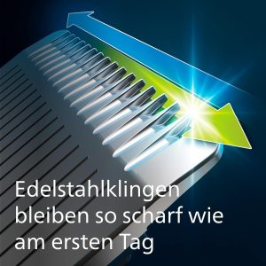 – Công nghệ BeardSense: Tông đơ quét mật độ râu 125 lần mỗi giây và tăng hiệu suất ở những vị trí mong muốn để cắt tỉa những bộ râu dày đặc, rậm rạp hoặc dài hơn.